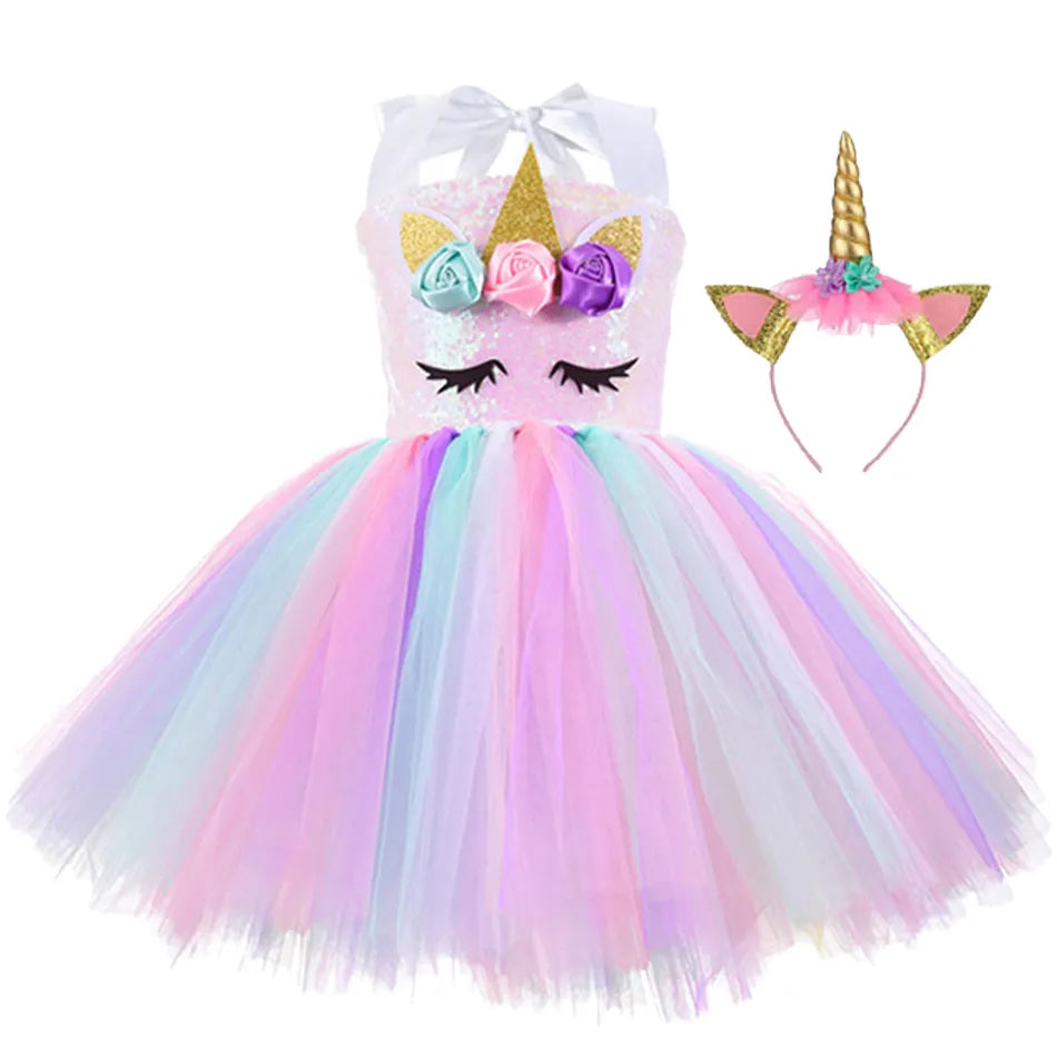 ⨠Unicorn Wonderland: Adorned with pastel flowers and unicorn motifs, this dress captures the magic of unicorns, turning your child into a whimsical princess.